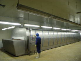加工工場は2000年に設立され、新盛と盛徳の二つ工場がある。敷地面積は67000㎡、加工工場面積13000㎡、製品冷蔵庫面積2000㎡。製品種類は主にフライ類、オーブン類、スチーム類、炭火焼類、スモーク類、野菜類など。冷蔵庫キャバー2000t。